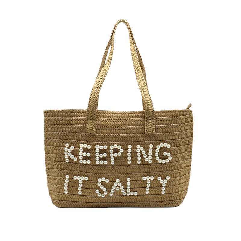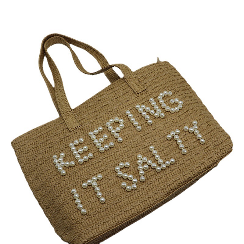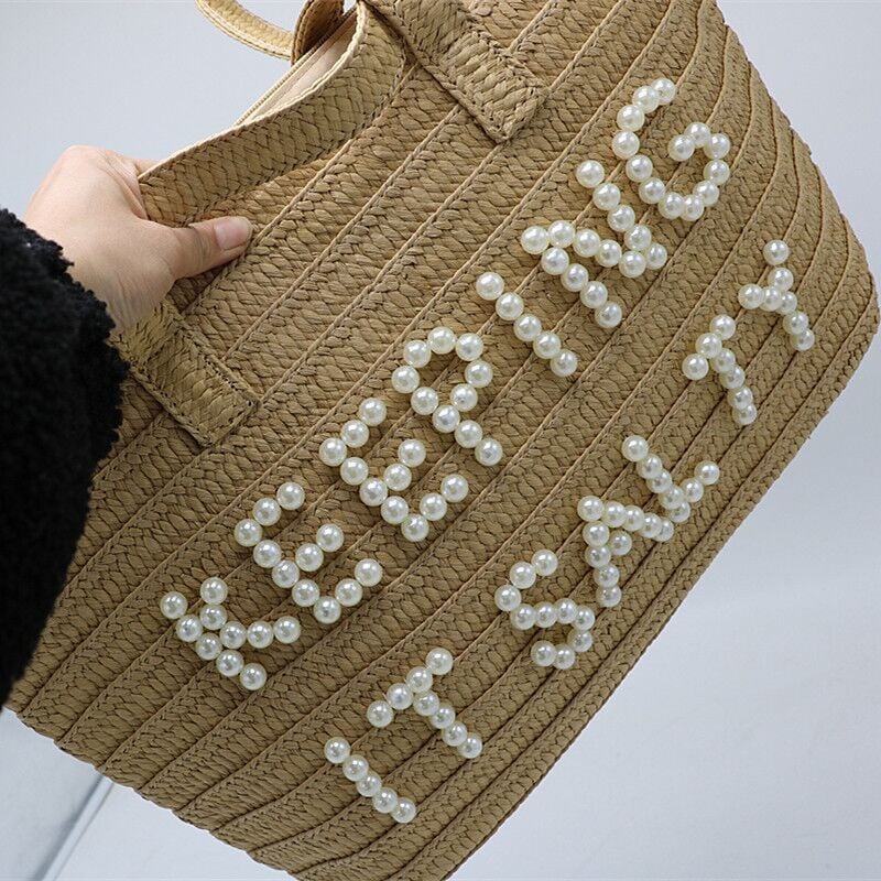 Letter embroidery straw woven bag shoulder woven bag fashion women's bag
