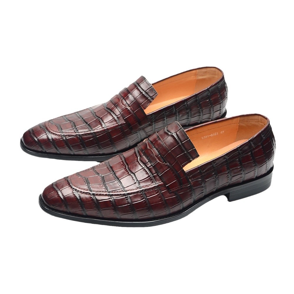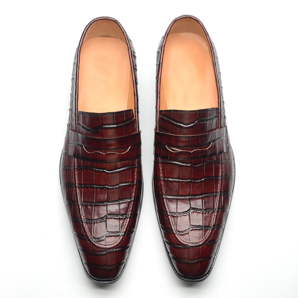 Men's high-quality handmade cowhide casual loafers with crocodile-pattern leather