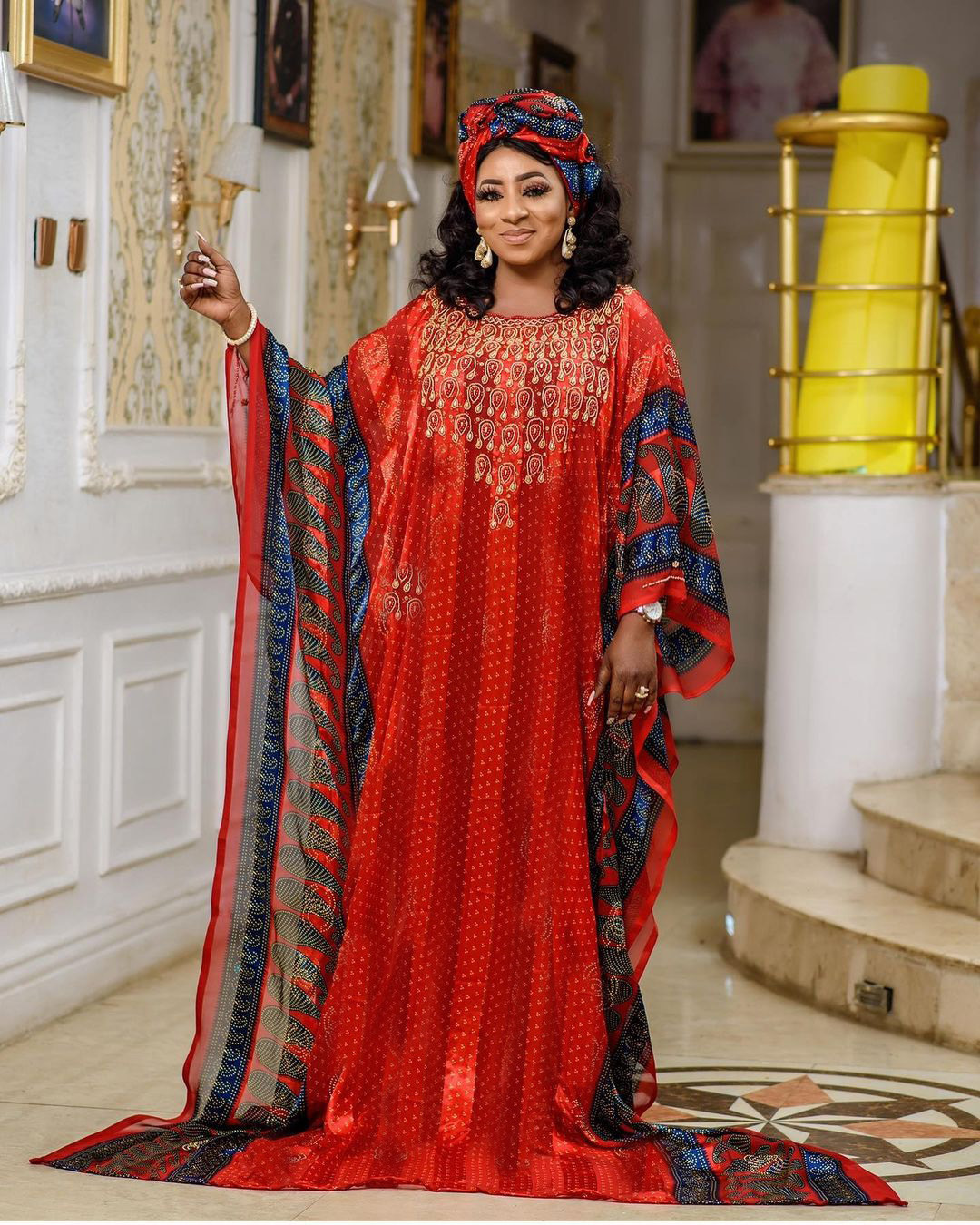 African women's large-scale dress chiffon ironing diamond and cannon beads inner skirt two-piece set