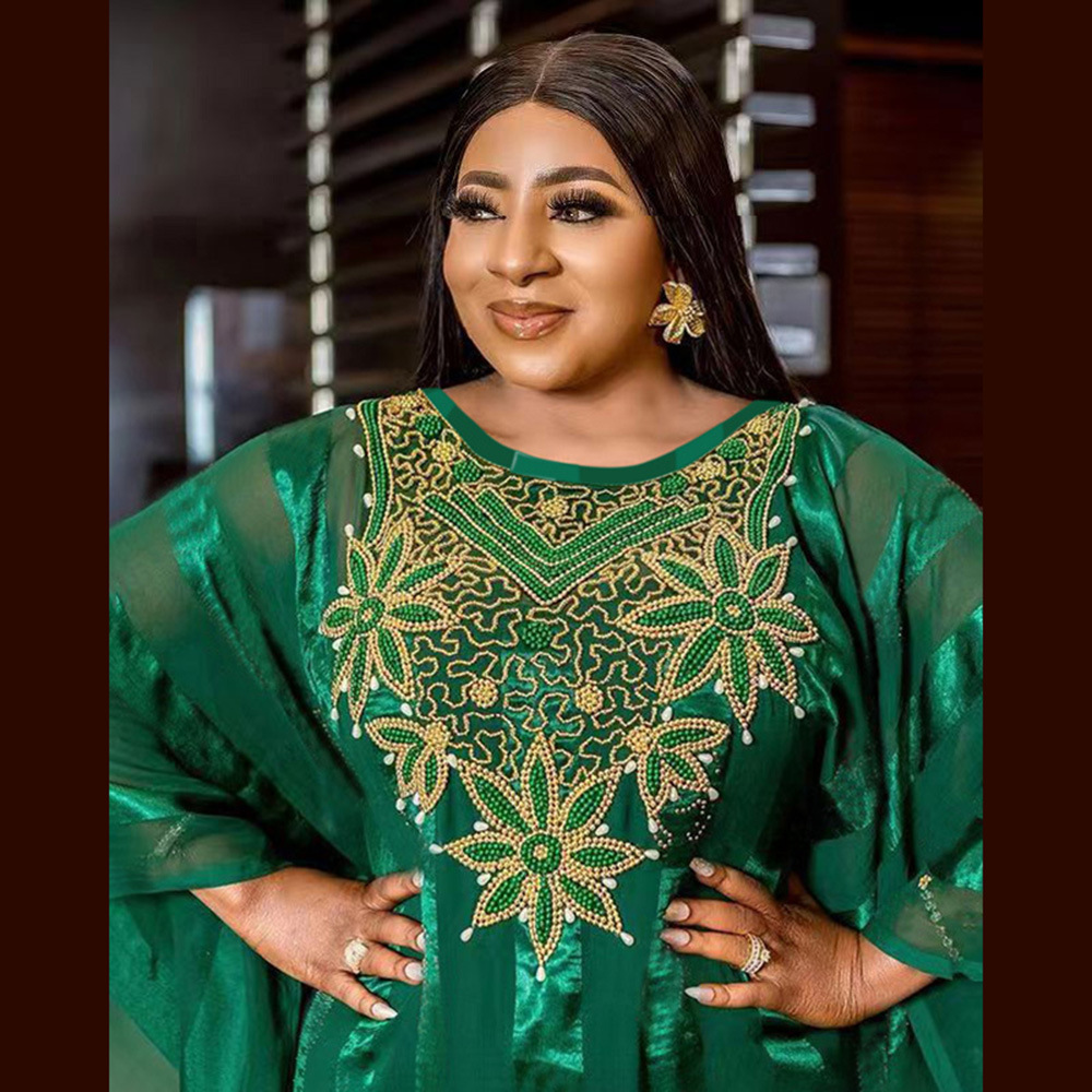 African national costume large swing dress chiffon robe fashion diamond-ironing with inner skirt