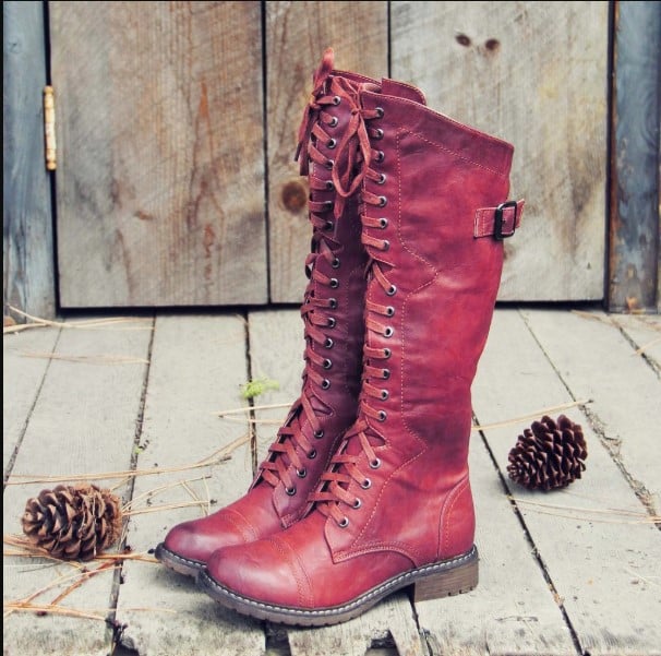 Women's low heel belt buckle lace-up knight boots high boots