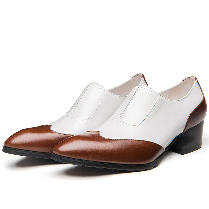 Men's genuine leather pointed toe breathable height increase matching color shoes