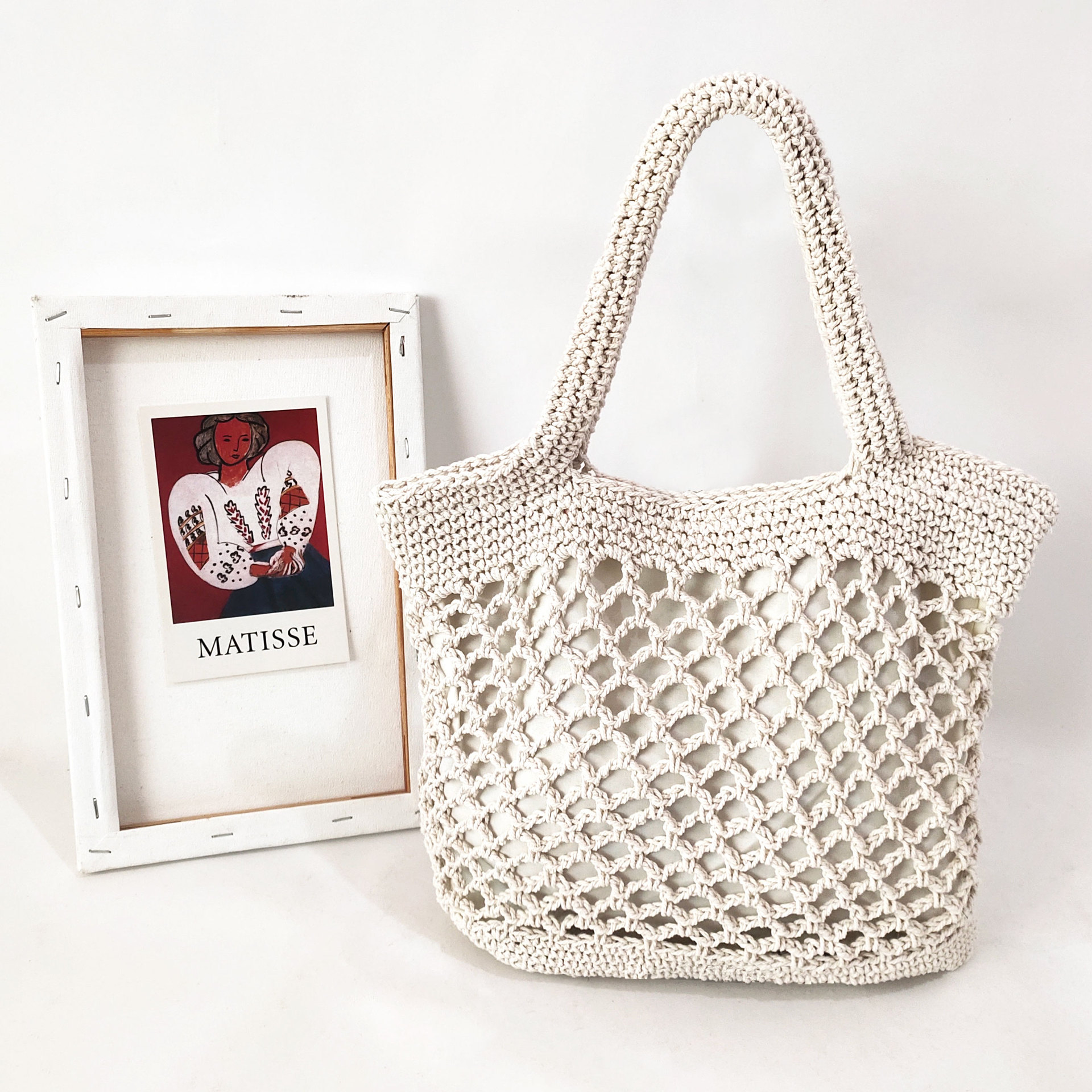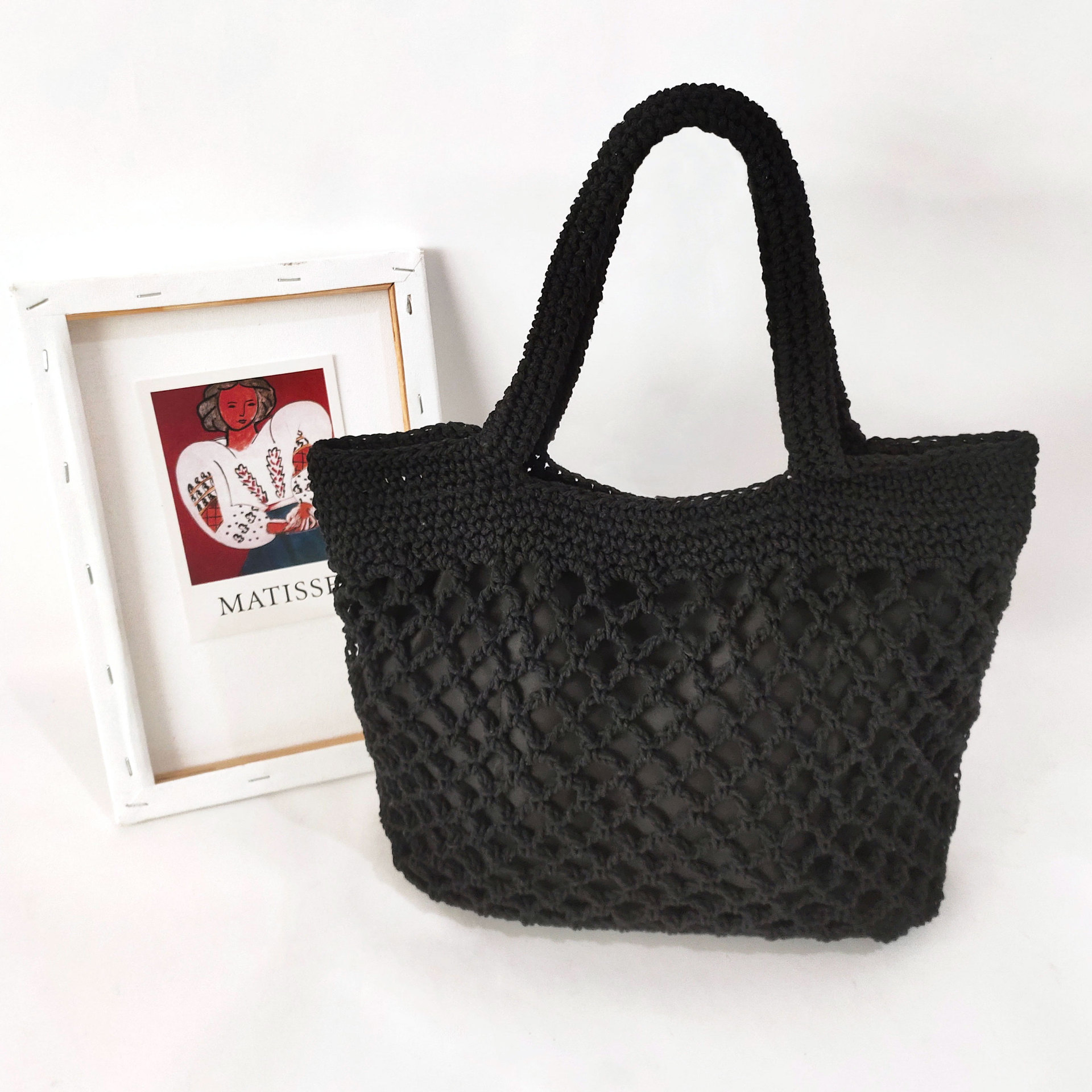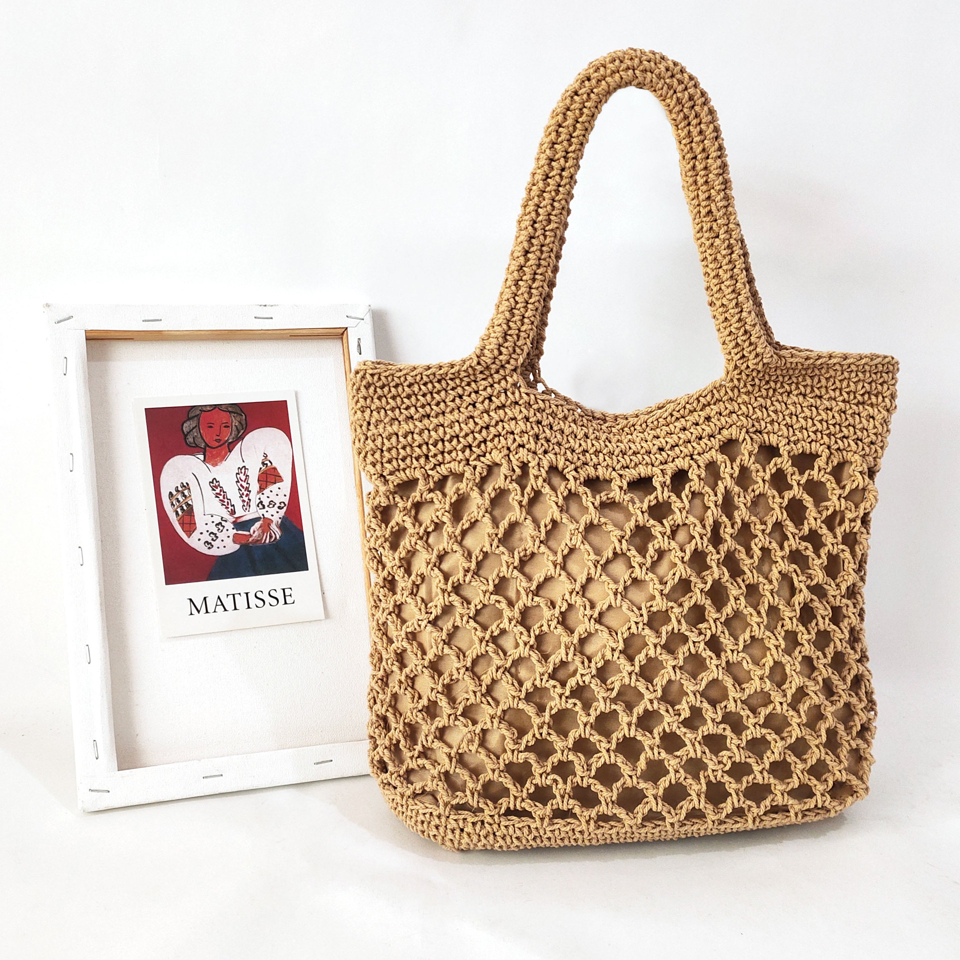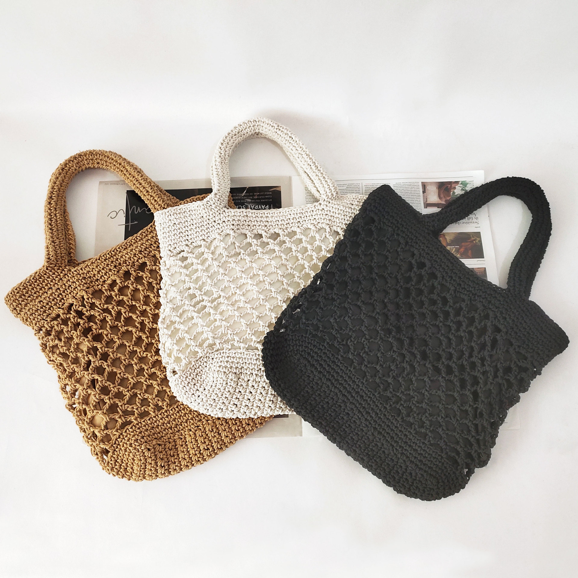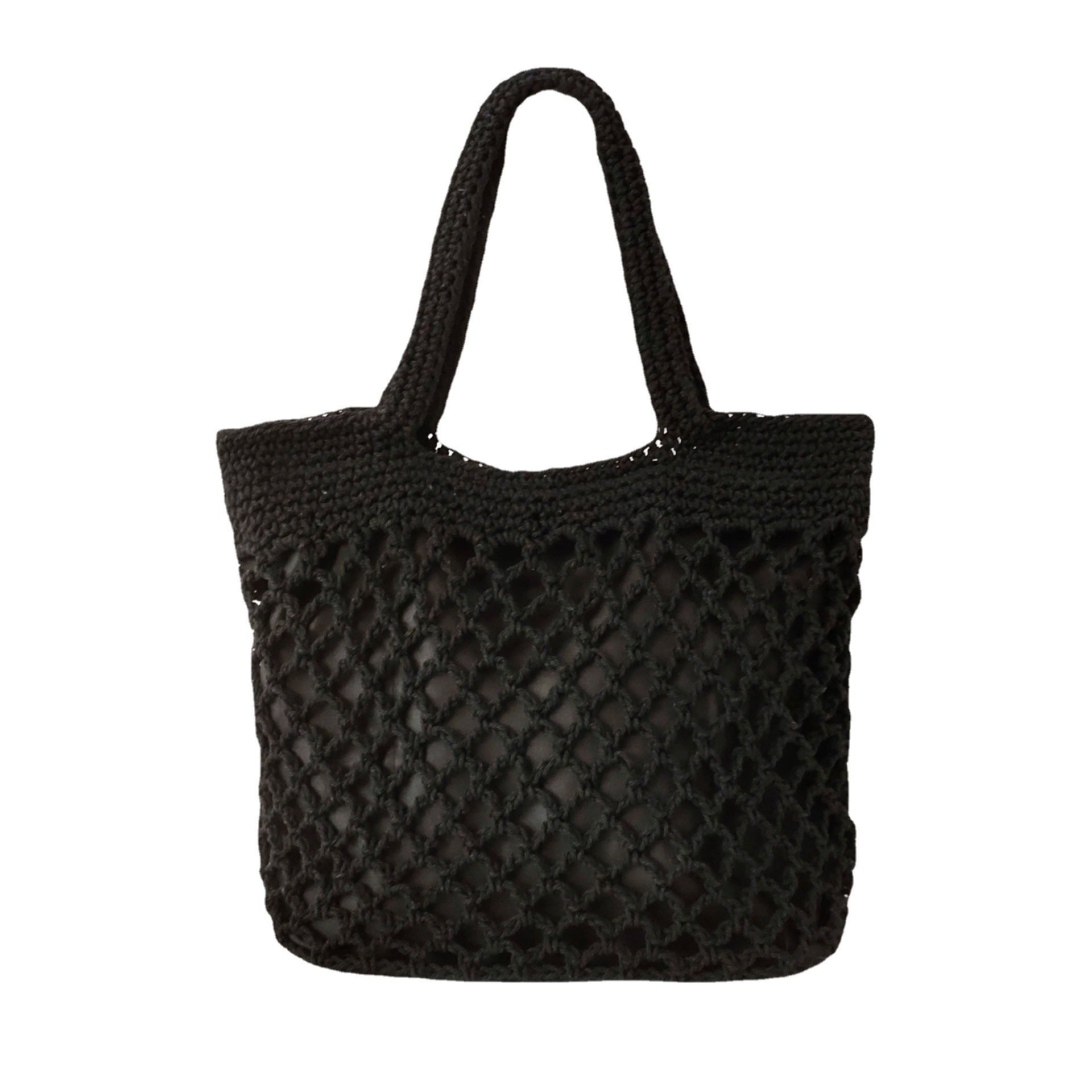 Cotton hand woven bag female hollow fishnet tote beach bag