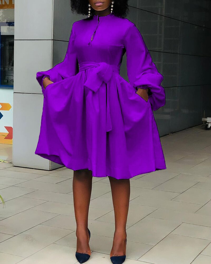 Plus Size Fashion Casual Solid Color Lantern Sleeve Skirt