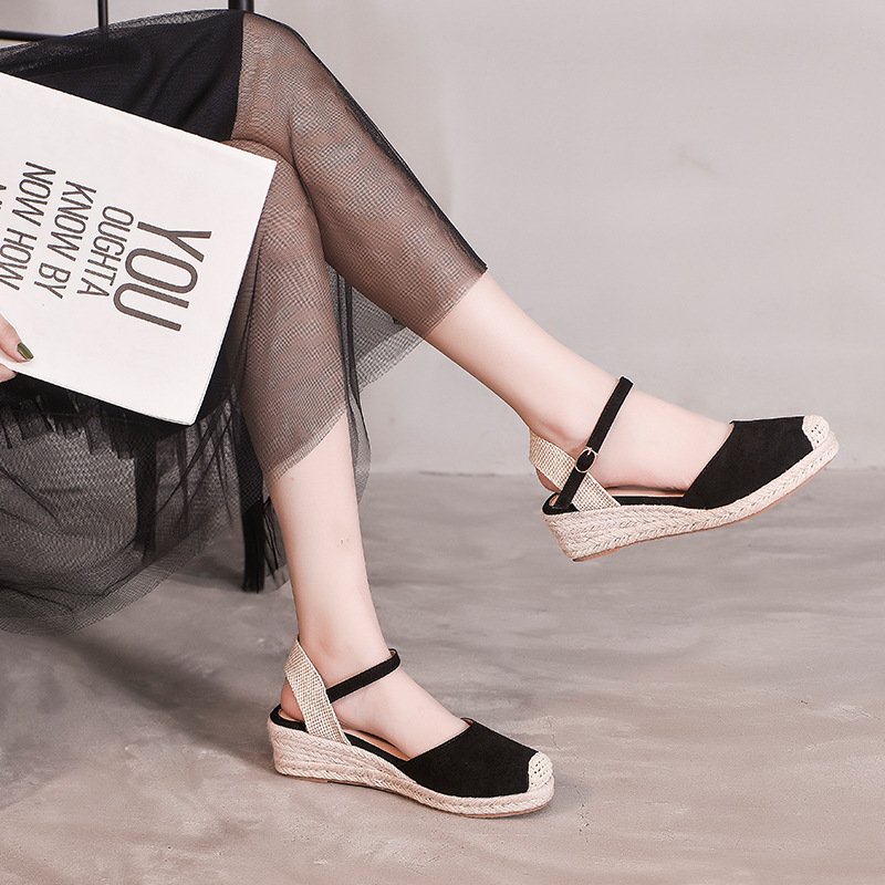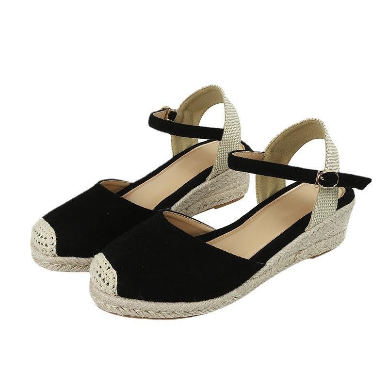 New round toe hollow sandals women's platform wedge sandals