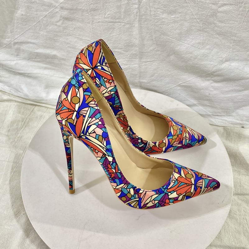 Women's 12CM satin floral high heels