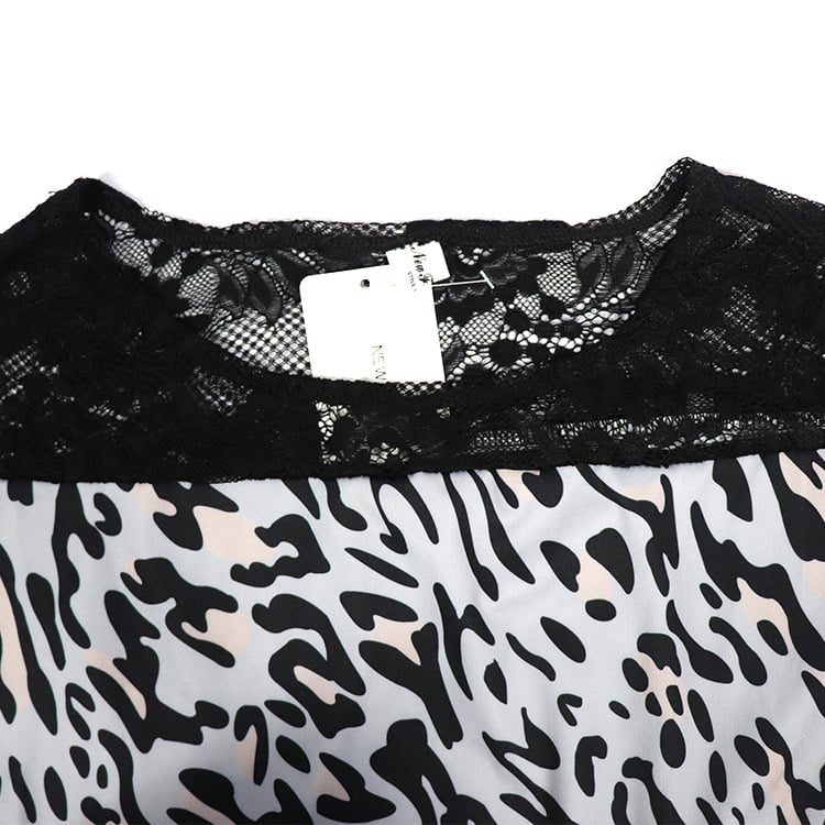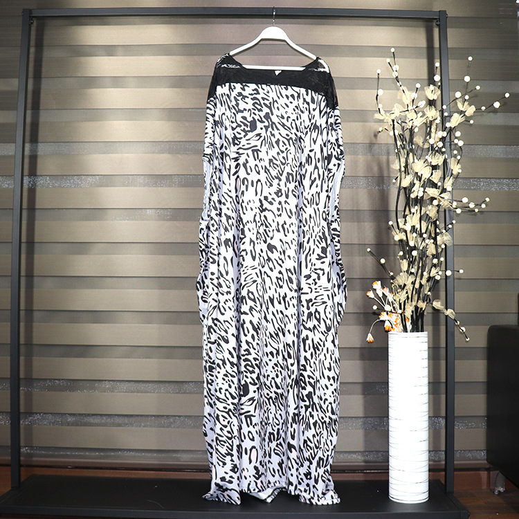 African Women's Dress Large Swing Robe Leopard Print and Lace