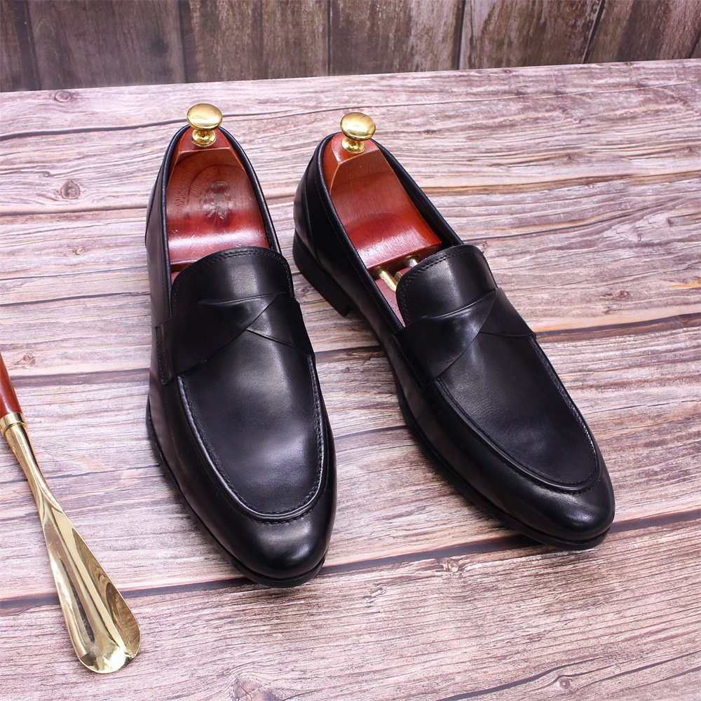 Handmade leather men's business formal leather shoes loafers 2 colors