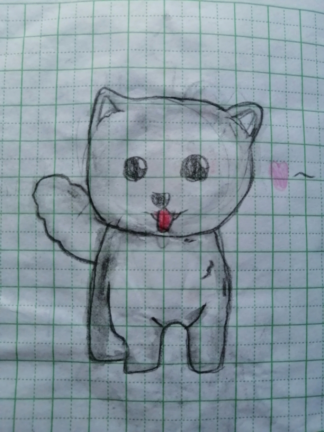 The painting is drawn by a ten years old of girl. The dog is painted on a homework paper by hands.