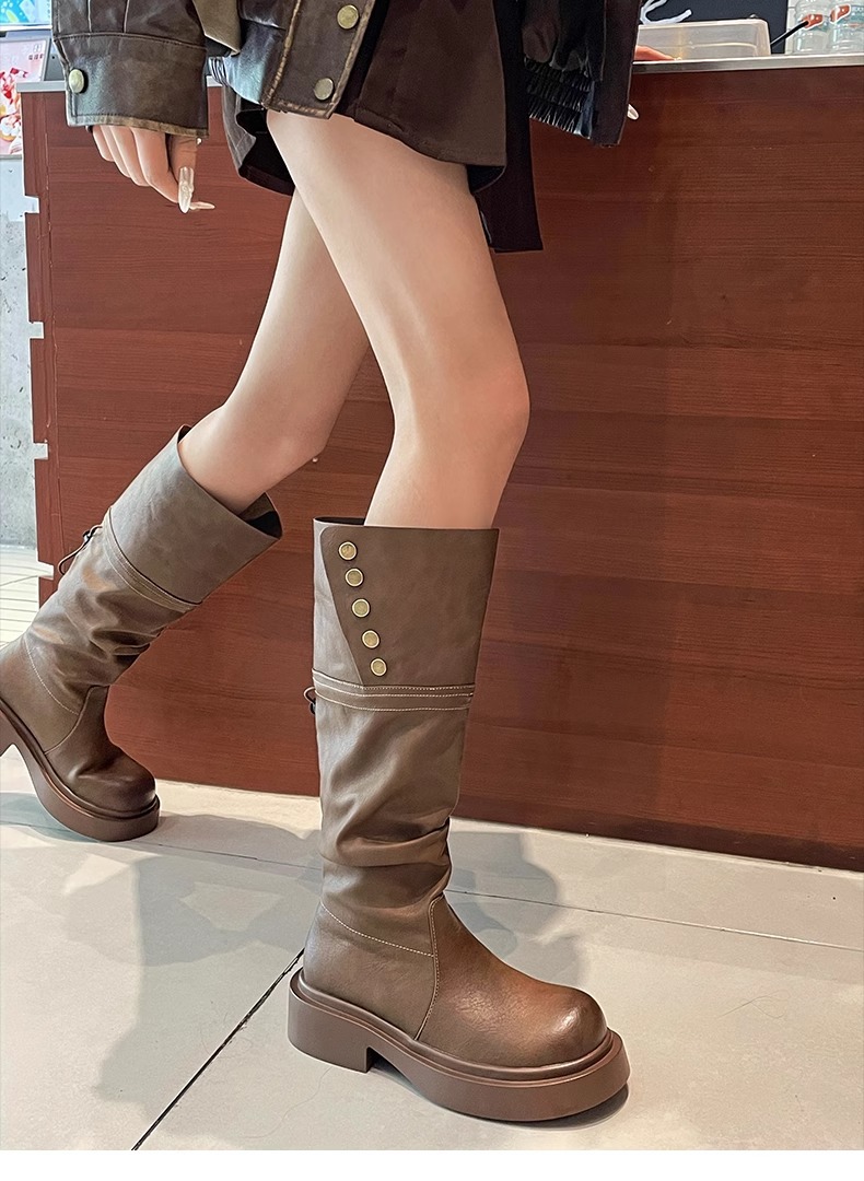 Women's retro thick heel thick sole genuine leather boots 2 colors