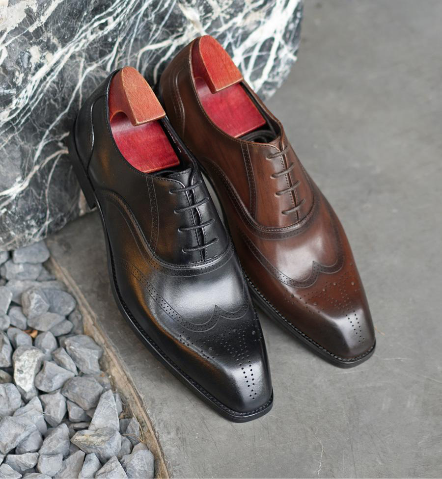 Imitation wood grain brogue Japanese square shoes 2 colors