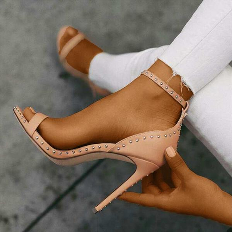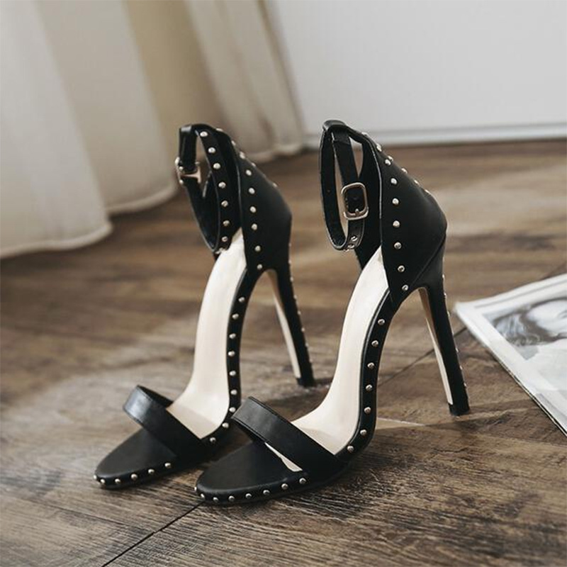 Sexy sandals high stiletto heel buckle with rivets large size women's sandals 2 colors