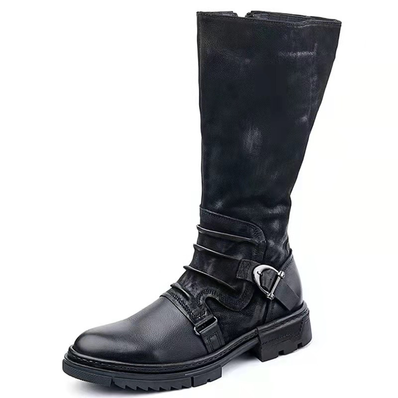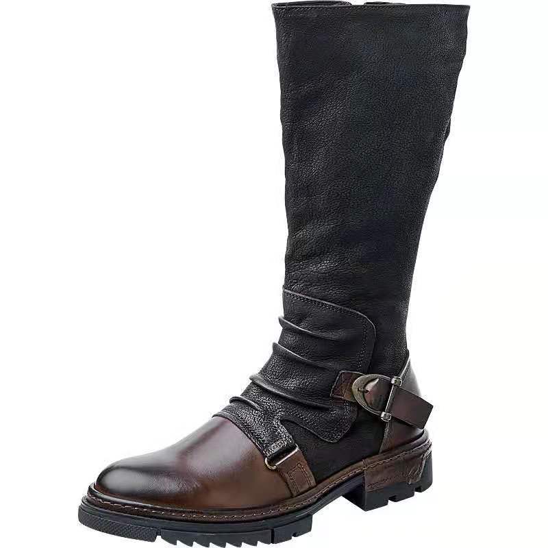 Large size leather boots thick sole belt buckle knight boots 2 colors