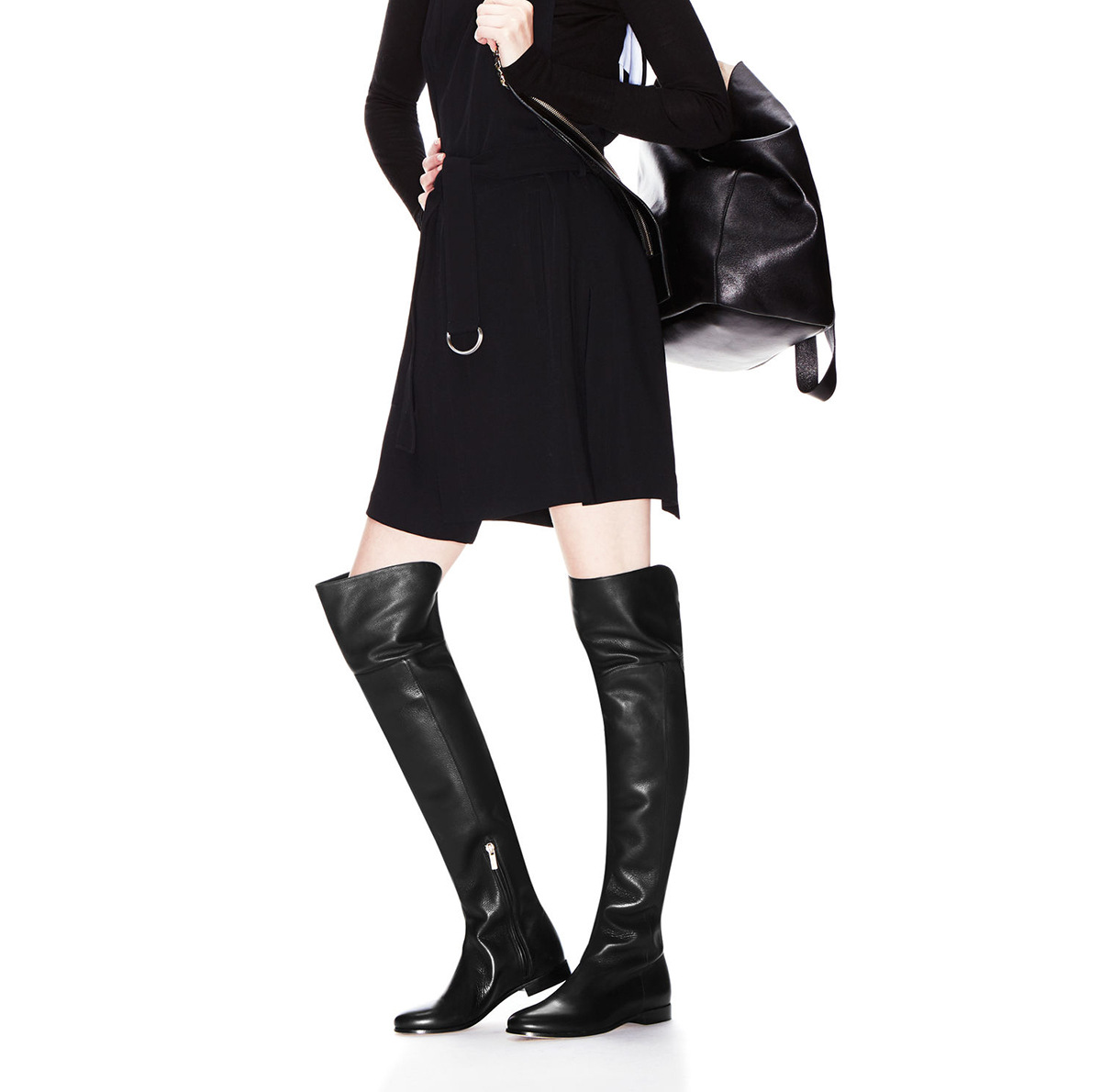 Female side zipper over knee flat bottom winter high boots casual knight boots 2 colors