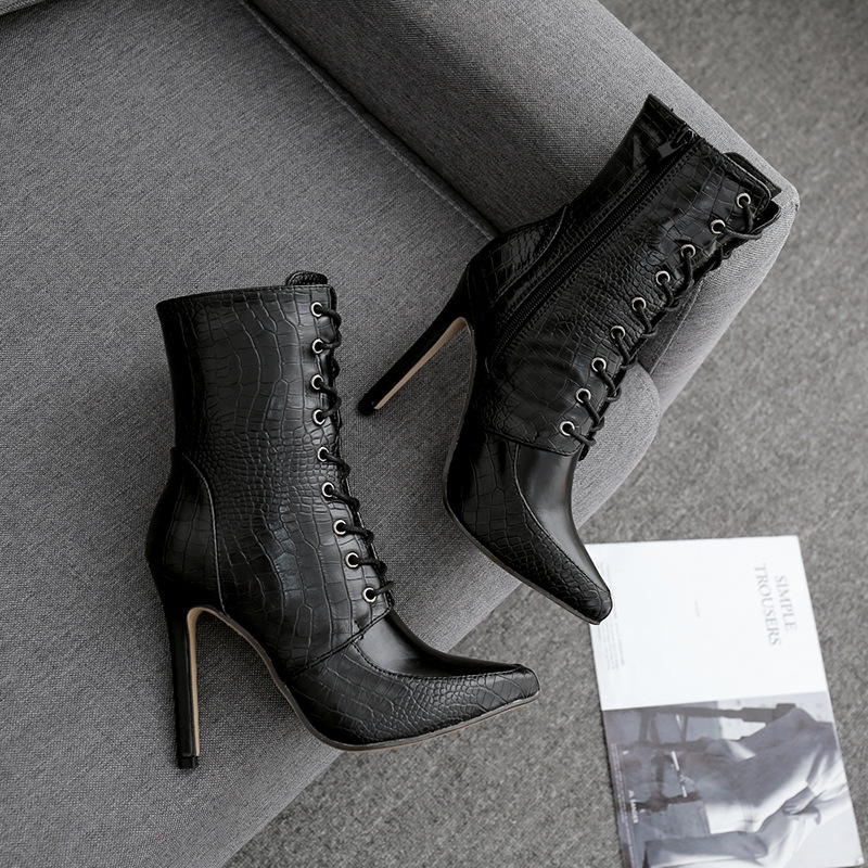 Women's plus size boots snake print lace-up front pointed toe boots