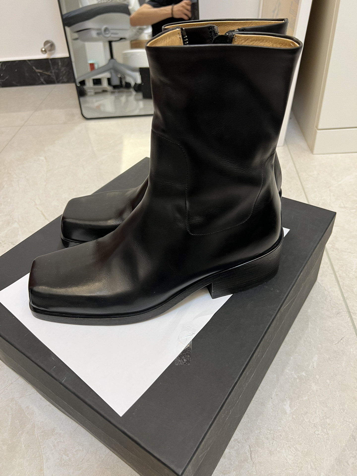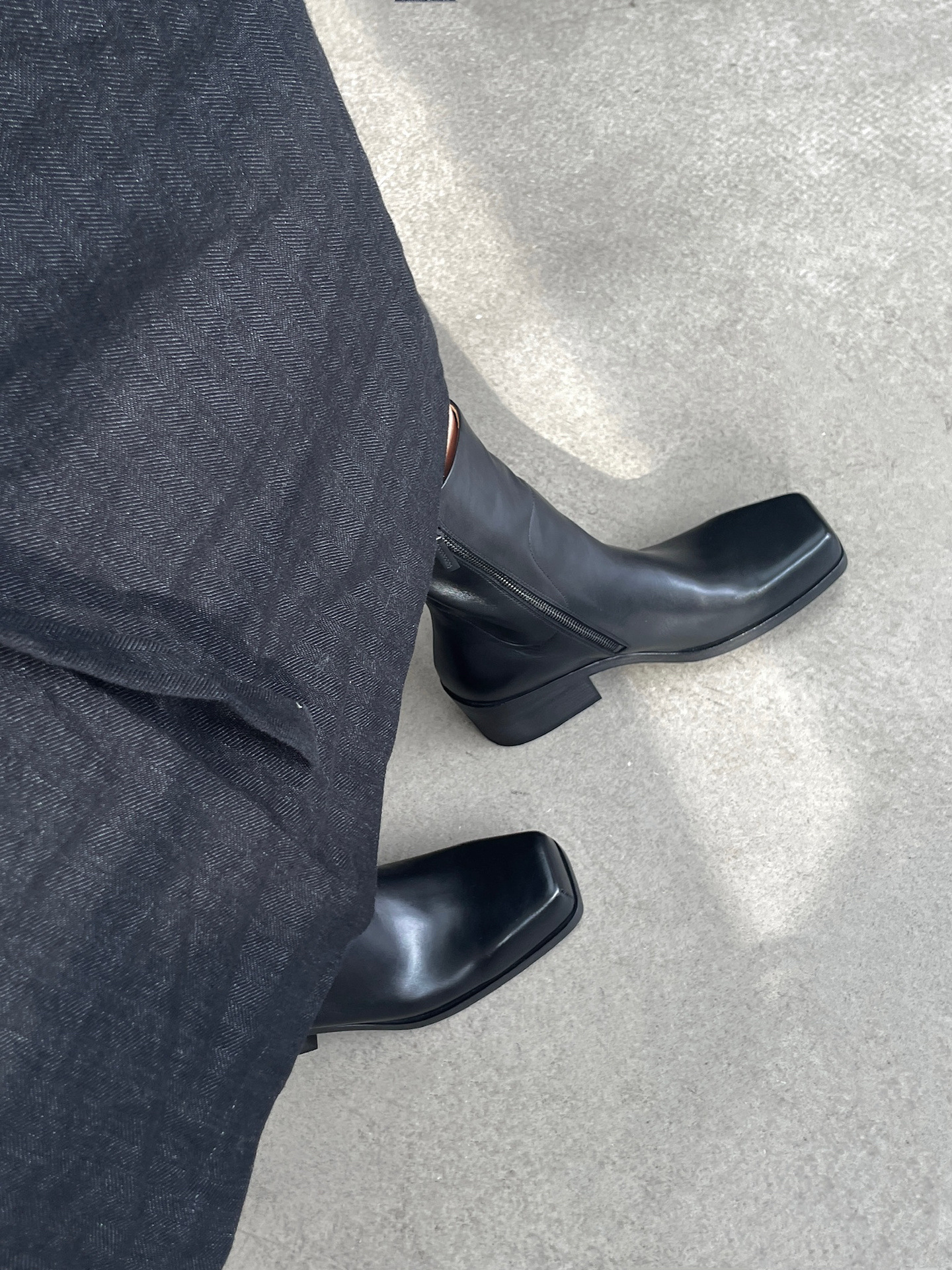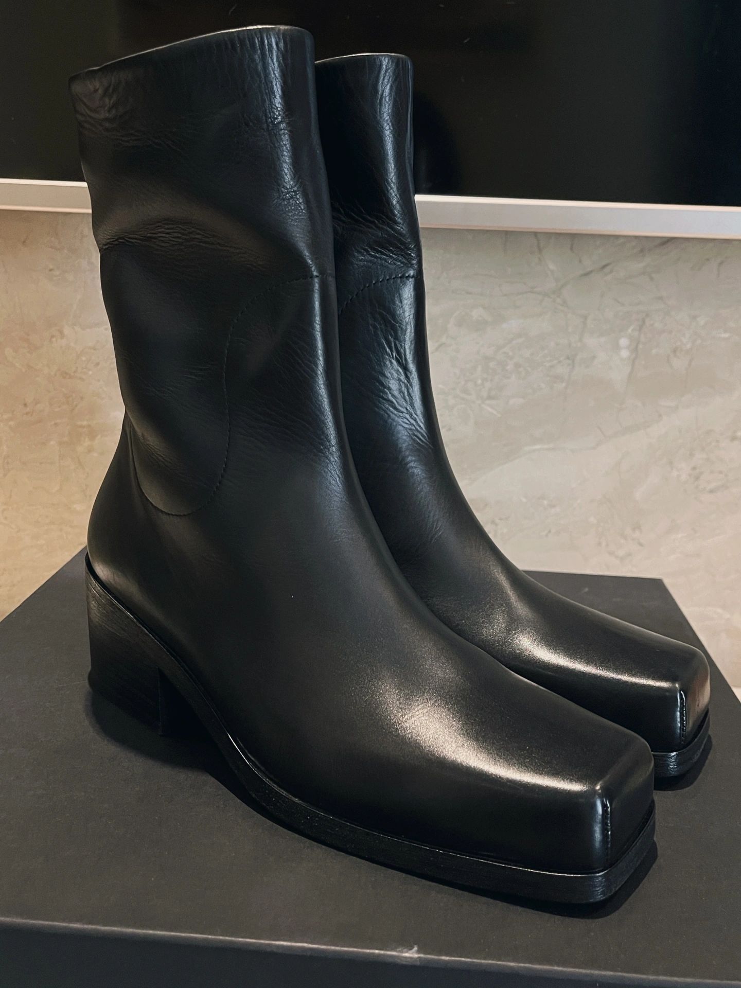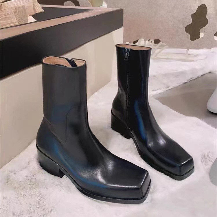 Cowhide square toe genuine leather thick heel Martin boots retro knight short boots