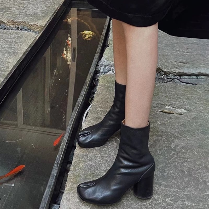 Women's genuine leather pig's hoof split toe martin boots 2 colors