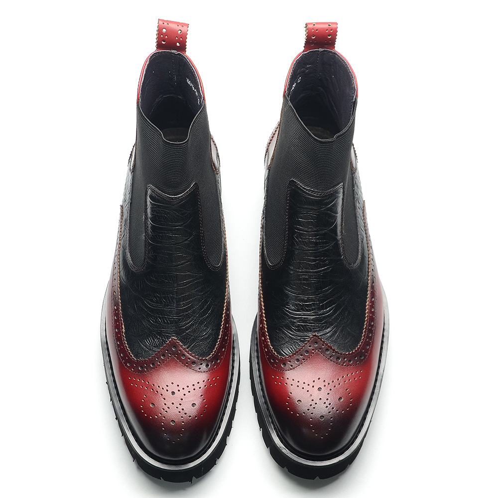 Men's handmade top-layer cowhide embossed fashion leather boots